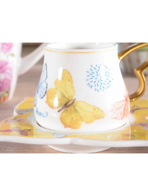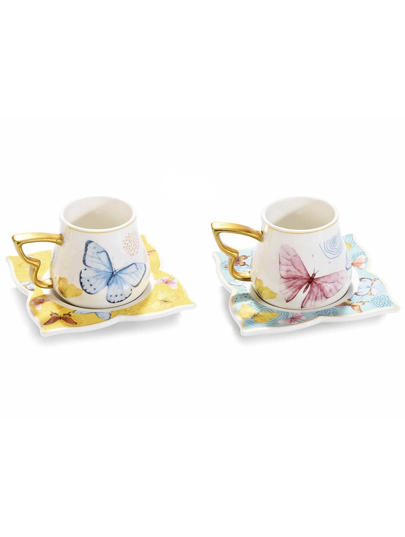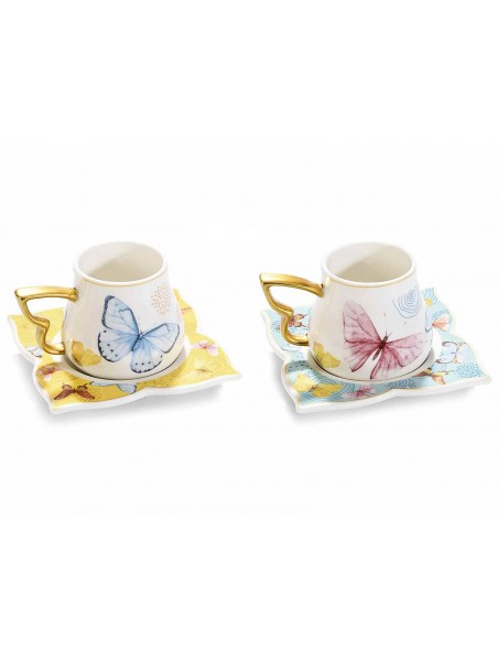 -30% Set 2 tazzine e 2 piattini... Prezzo 17,50 € Il nostro prezzo precedente Prezzo base 25,00 € Set 2 tazzine e 2 piattini Farfalla porcellana con decori dorati Misure: Tazzina: Ø 6 cm x 5,5 H Capacità: 80 ml Piattino: 9,5 x 9,5 H